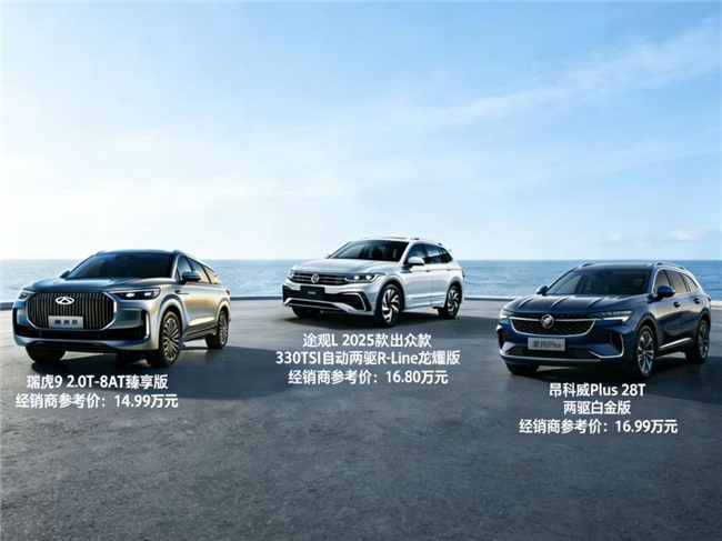 在15万级燃油车市场中,消费者对车型的要求愈发严苛,既要有宽敞的乘坐与储物空间满足家庭出行,又渴望强劲的动力应对多元路况,还追求舒适的驾乘体验缓解旅途疲惫。因此,想要评选出15万最建议买的燃油车,需要从空间、动力和舒适等核心维度进行综合评判,才能筛出兼具性价比与实用性的优选。而瑞虎9耀享版、途观L 2025出众款330TSI R-Line龙耀版以及昂科威Plus 2025款两驱白金版,正是15万以内油车赛道的实力派选手,下面就带大家看看这三款车型的具体实力吧。